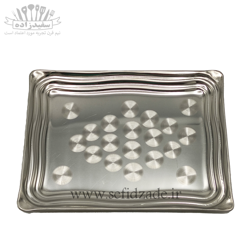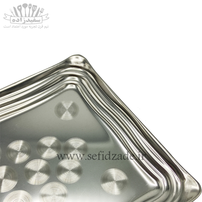 سینی استیل مستطیل تک نفره برای پذیرایی های خاص تک نفره یک وسیله فوق العاده است. ابعاد این سینی 13×17 سانتی متر است. برای جلوگیری از خش افتادن در داخل این سینی با موج تزئین شده است.